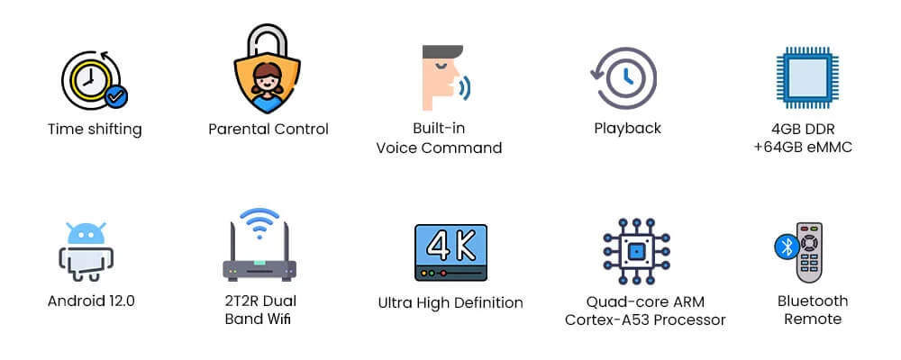 The SuperBox S6 Max revolutionizes the TV industry with its groundbreaking Time-shift function, a first of its kind. Unlike the traditional Playback feature, Time-shift lets you instantly access and watch any program from the past 8 hours with just a single click. This cutting-edge innovation ensures that you never miss an important moment, providing unparalleled convenience and efficiency in catching up on your favorite content.