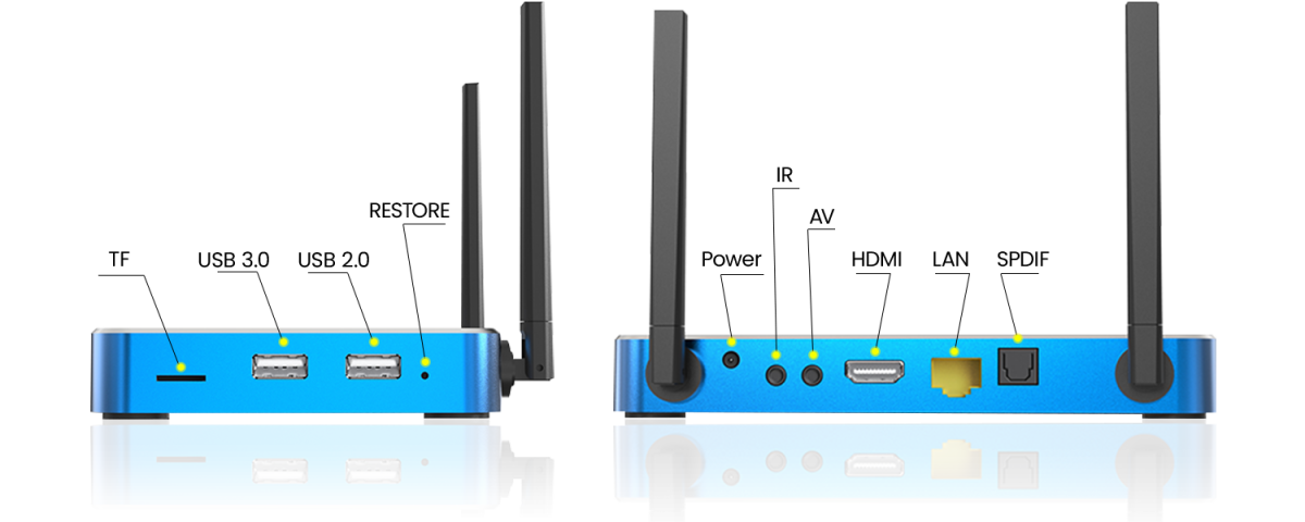 The SuperBox S6 Max excels with exceptional data transfer and processing speeds. It features 2.4G/5G dual-band WiFi and supports WiFi 6, complemented by 1000 Mbps Ethernet ports. Dual external antennas ensure smooth streaming, while Bluetooth 5.2 provides seamless connectivity with the latest tech devices.